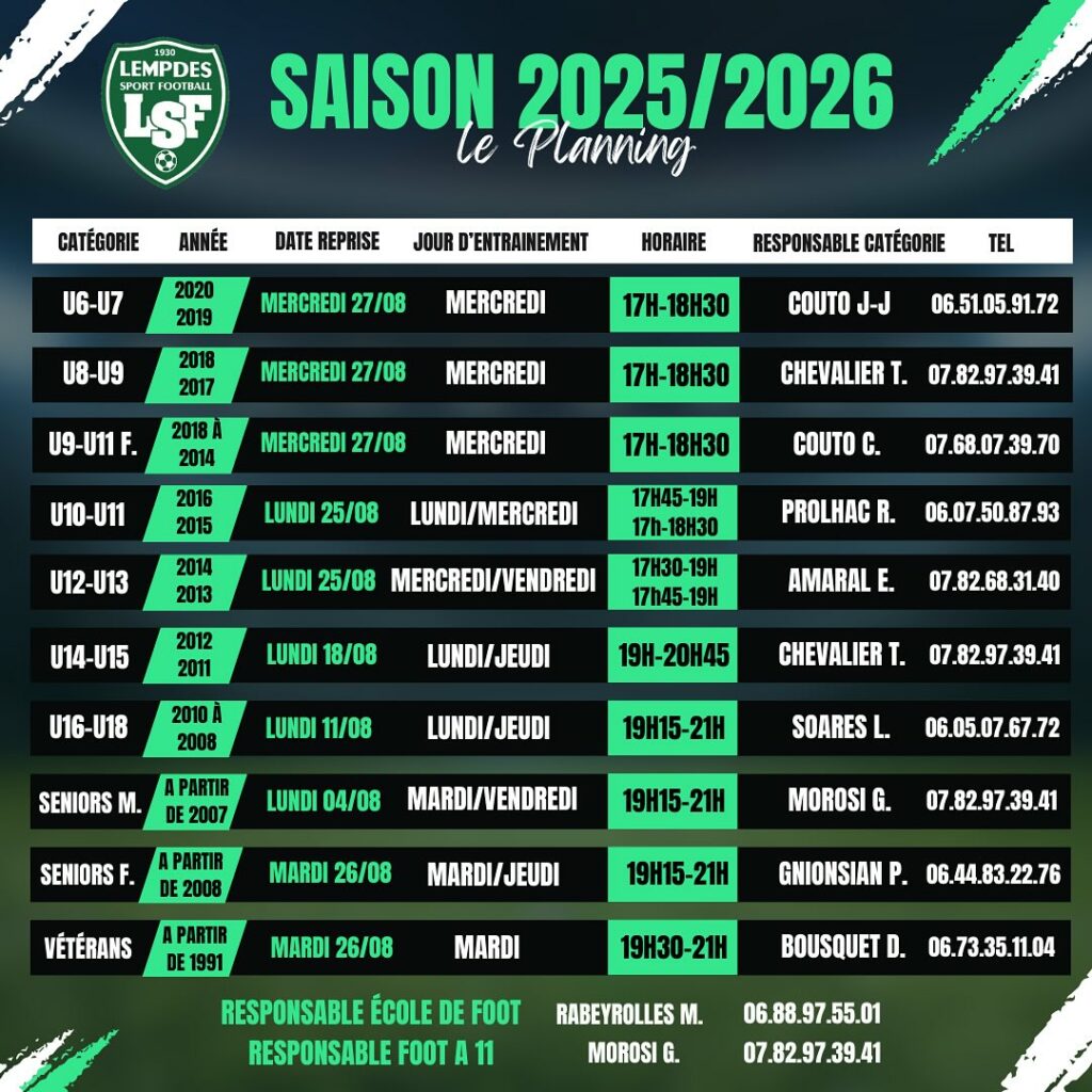 Le LEMPDES SPORT FOOTBALL lance sa campagne d’inscription pour la saison 2025/2026 !!